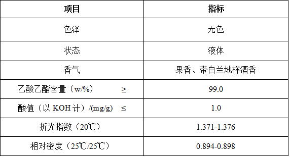 2、在白酒中,為清香型的主體香,其含量可高達(dá)2326mg/kg;在濃香型白酒中其含量在1000-1500mg/kg之間。其嗅感和味感在50% ?。╒/V)脫臭乙醇中,1000mg/L時似醚香、果香,味辣、澀;100mg/L時略有醚樣、有淡的果香。